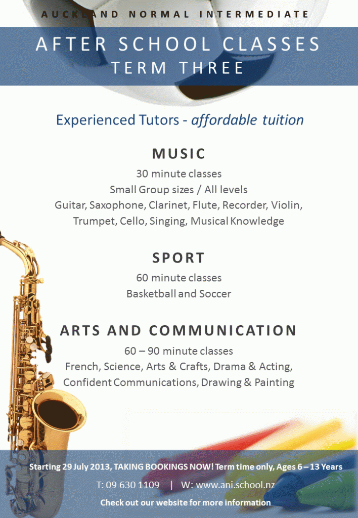 오클랜드 일반 중학교 (ANI)는 11~13년 세 학생들을 위한 2 년간의 공동 교육 학교 숙박 시설입니다. 약 700 학생 20 국제 학생들은 현재 학교에 재학 중입니다.